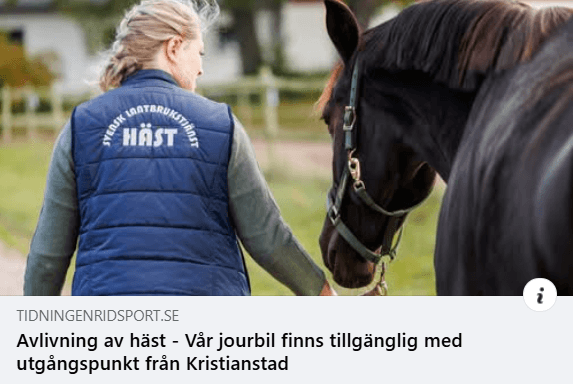Att ta farväl av en bästa vän kan vara och upplevas som en av de svåraste stunderna för en hästägare. Det är ett tungt men viktigt ansvar för alla djurägare att avlivningen sker på ett ansvarsfullt sätt och att det kan gå lugnt och värdigt till. Genom att förbereda dig och läsa på om olika alternativ, vet du när dagen är kommen, vilken avlivningsmetod som ska användas och hur du vill att din häst ska omhändertas efter utförd avlivning. Ett viktigt led i förberedelserna är också att förbereda för den ekonomiska delen vilket påminner oss om att även om dagen för avlivning är svår, kan vi genom rätt förberedelser ge vår häst ett värdigt och fridfullt farväl.